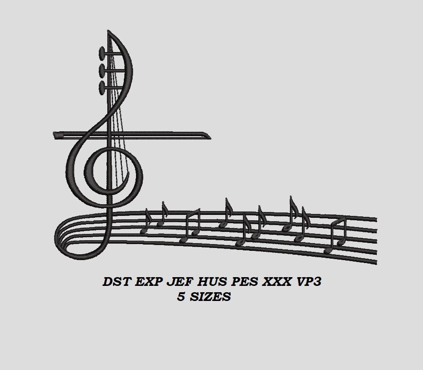 Musical Notes Embroidery Machine Design 5 Sizes Love Music Etsy